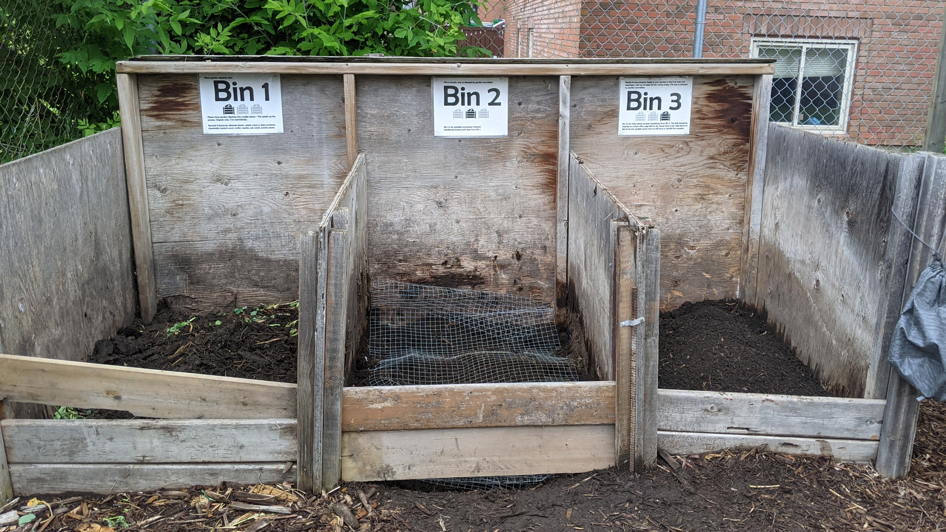 Eventually, Bin 2 will be turned into Bin 3. This is ready for you to help yourself and add to your garden. Keep in mind this is compost, not planting soil, so would normally be used as a thin mulch layer on top of your plot, or mixed into your existing soil to amend or improve it.