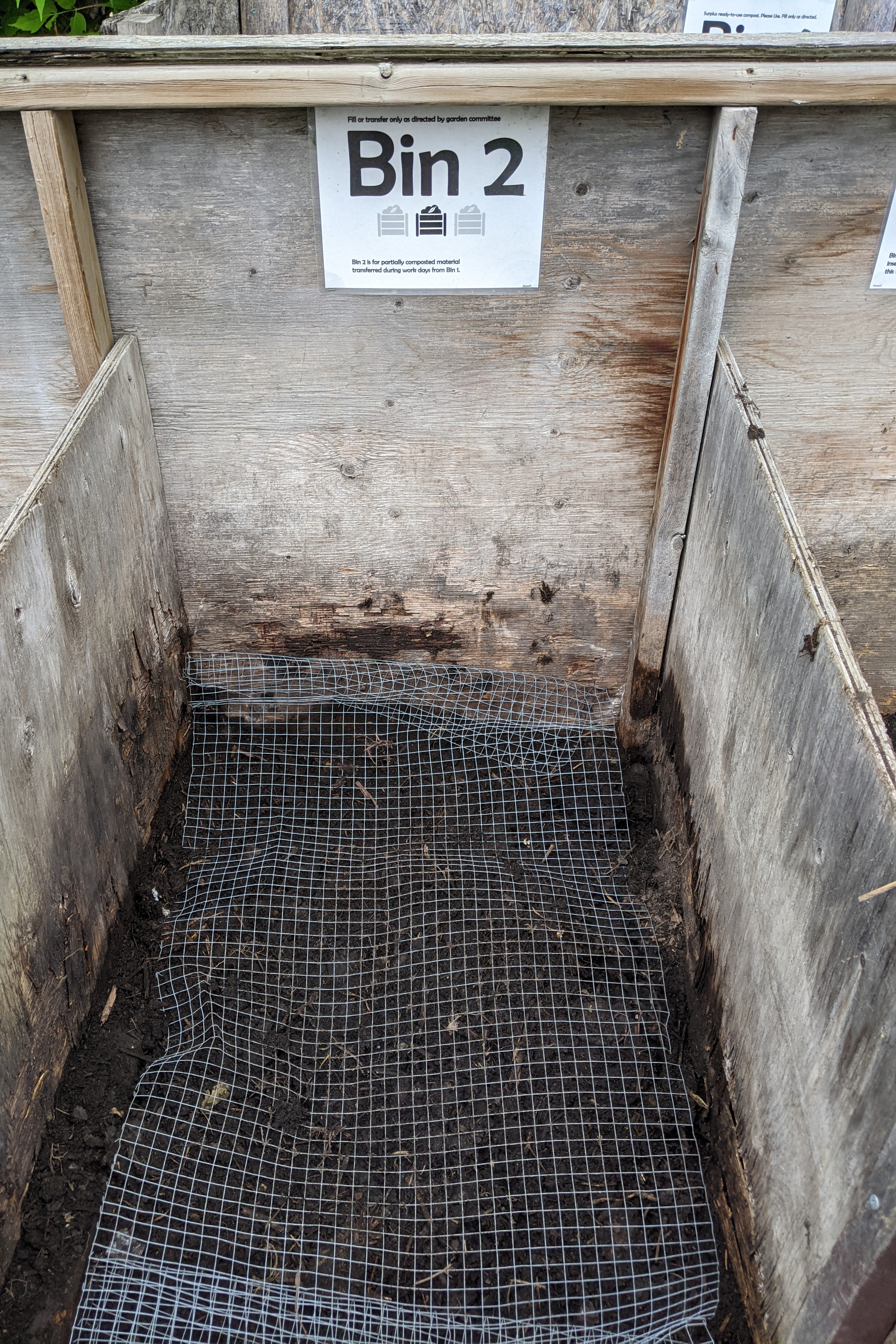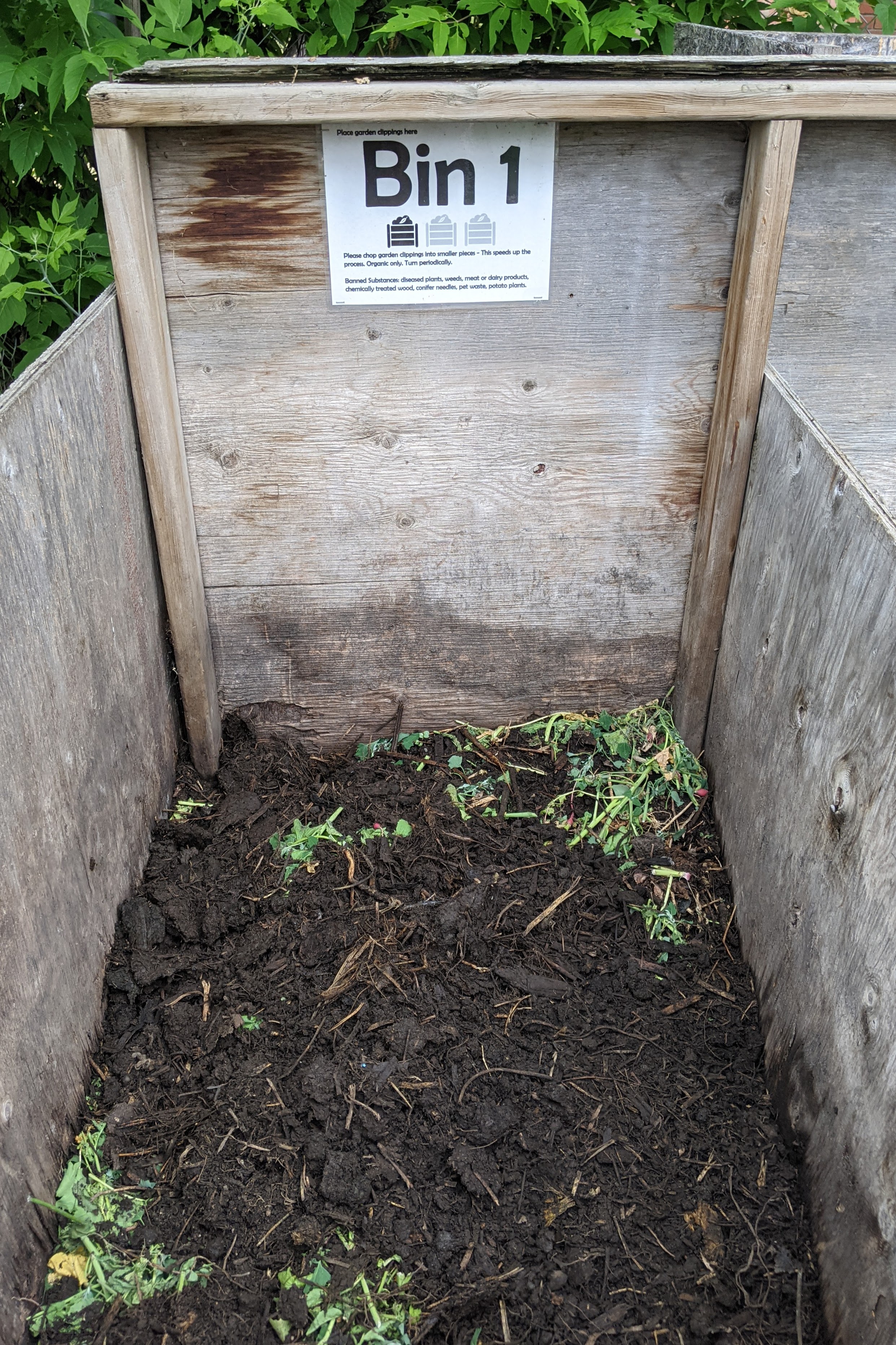 If you are feeling energetic and have a fork (available in the tool shed) it is a good idea to churn up bin1 contents from time to time to aerate it and speed up the decomposition.